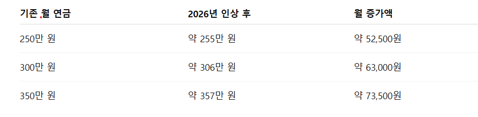 - 2026년 연금 조정률: 2.1% 확정